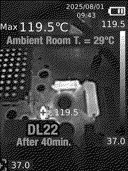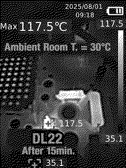 I'm still concerned about the 133.9*C max. temperature I measured on the 1N5355B 18V 5W Zener diode (DO-15 package size) soldered to DL22 pads. It stays that way for about a half hour after you do a Shutdown from the booted condition and then it remains at about 121*C to 125*C (well, at least that is true with the rear housing removed, and with a 31*C ambient room temp.) That was measured using a quality thermal camera, measuring the BODY of the diode, which means the actual junction temperature is 2-3*C hotter.
