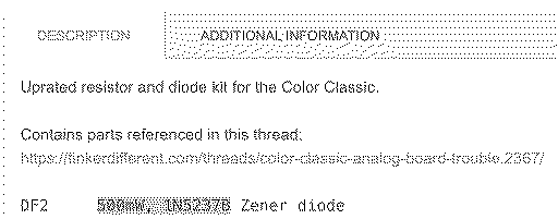 Apologies for the belated response. I was able to measure the resistance of the resistor yesterday, and can happily report that it does measure correctly at ~100Ω. I was working on the analog board of my CC I too was scratching my head, as as I couldn't make sense of its value based on its color bands. I even asked my wife if I was perhaps seeing the wrong colors, but she confirmed seeing the same colors. I do agree it would be helpful for Luke to add a bit more description to the listing, and update their wiki page to list these too. I was referencing your (very helpful, thank you!) images/gifs when working on my board, as I like to have a visual companion when doing these types of things. I can also happily report that my second Color Classic seems to be working very nicely so far after recapping its analog board and replacing these resistors and diodes with Console5's kit(s). I must admit that the included 1N5344B diode has legs that feel way too thick, so it's not actually possible to install it without increasing the hole sizes a bit. That's a bit of a scary undertaking especially as these components that run super hot already seem to increase the odds of lifted/loose pads. Still, the CC has been running like a champ for 3-4 hours yesterday and about the same today so far, which I'm very happy about. Liked by JDW |