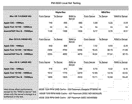 The driver I used ("Apple Enet" extension, v2.4.2) for the "Apple Fast Ethernet 10/100BaseT Card" didn't work under Mac OS 7.6. For the "AsanteFast 10/100 PCI Ethernet Adapter Rev. B" I used this driver from Macintosh Garden. The hard drives I used for the different OS tests were different which makes the tests not directly comparable but I was testing with what I had on hand and as much as it bothers me that I didn't take the time to get a disk configured with partitions for each OS and run the tests from there I think it does help illustrate the impact of drive performance on network data transfers. My take aways: Mac OS 7.6, and likely earlier versions, aren't really able to take advantage of 100Mbps Fast Ethernet. Not sure about 8/8.1 but by 8.5/8.6 it seems Apple made OS changes which allow the same hardware and driver (the Asante card/driver being the proof) to take advantage of 100Mbps Fast Ethernet. In testing and real world you need to have source and destination disks able to sustain more than 10Mbps (1.25MBps) reads and writes to make use of 100Mbps Fast Ethernet. The "RAM to Server" tests may likely show some SD card storage bottlenecks on my Raspberry Pi server. I'm curious to see what the mystery Fast Ethernet controller chip @Androda is using and what the driver is, from its shape it doesn't look like it will be the Digital 21140 that my Asante and Apple Fast Ethernet cards use. Excited for this project!