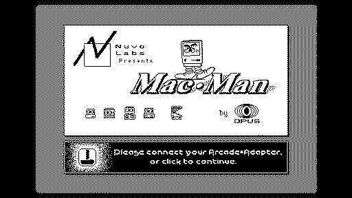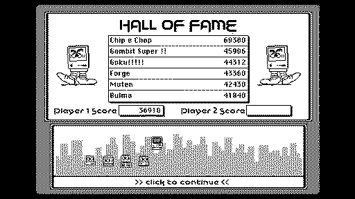 Finally, Mac-Man. Got it running under vMac, and I have to say it isn't much fun. I normally quite enjoy pac-man style games, but in this one, the enemies are always way faster than you, and they nearly always directly chase you, which makes it extremely infuriating and difficult to play. It also runs much faster than Pac Man, which adds to the difficulty. This is all on the average difficulty by the way (default settings). Even in the lowest difficulty, the enemies are still faster than you, which normally only happens in later levels in Pac Man. Also, for whatever reason in the lowest difficulty mode, the power pellet equivalents don't work, which actually makes it more difficult than Average, so I played on average. The fact that they spawn in the corners instead of the middle doesn't help either. 5150 (funny score considering that the enemies in the game are PCs)
