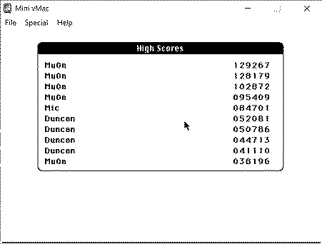 This is challenge #2 with 3 new game selection. Don't know what this is about? Then check out the previous thread of challenge #01 here. You can only submit 3 scores PER game. We'll have none of hyperfocused spam from one player, discouraging others to participate. Knowing this, what will you do? Do a quick valiant effort as a first submission to set the bar high? Keep practicing silently so you can come in late and shatter everyone else's notion of a good score? Oh, the drama that will unfold if we get into it! Need help running these? If you're here, chances are slightly higher that you have a real vintage mac capable of extracting and running these games just fine from Mac Garden. However, you might not have such a useful setup, and may want to resort to emulation. That's more than fine! Here are some good tutorials to get an emulator setup. It's a pain, but it's well worth the effort and you'll be glad for all future usage of old mac games and apps. Here's Macintosh Librarian's tutorial on the Basilisk II emulator (great for color, Performa-type 68k machines) Here's Classic Mac Gaming (Gruz)'s tutorial on the mini-vMac emulator (great for black and white, Mac Plus era machine) nifty EASY to download .DSK volume that's compatible with both Baslisk II and mini-vMac. Just download the attached file GAME 1 - MOUSE STAMPEDE 2.0 (1994) - Recommended emulators: Basilisk II or mini-vMac GAME 2 - CRYSTAL QUEST 2.2 (1987) - Recommended emulators: Basilisk II or mini-vMac GAME 3 - CRAB ATTACK II (1989) - Recommended emulators: mini-vMac