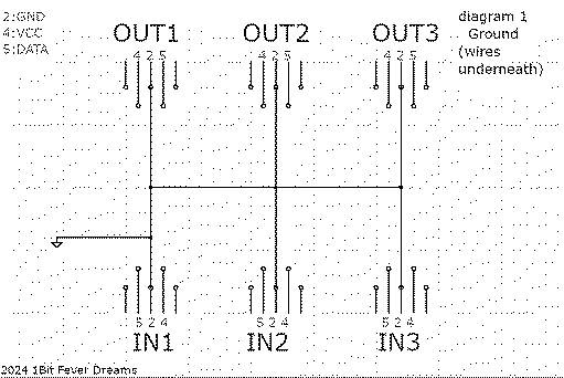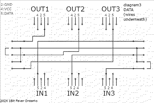 Here are my diagrams. ALL views are from the top side, ie the MIDI female sockets are seen from above, but these 3 wires can be either on the top side of the board or the bottom side (the diagram specifies which) VCC lines: DATA lines: