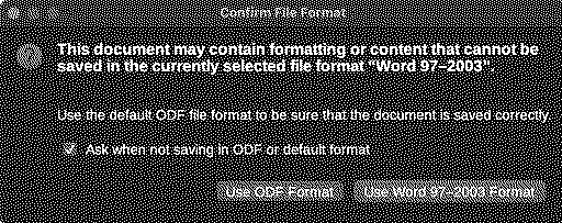 I tried that. When I tried to save documents the way you indicated, I'd get the following. I saved in that fashion anyway. But then, I wasn't able to view this document on the iMac.