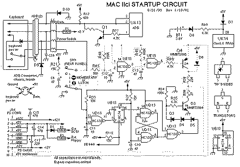 Broken traces around UE13 (HC132), or just a bad chip.https://oldcrap.org/wp-content/uploads/2023/04/apple-iici-schematics-startup-circuit.gif