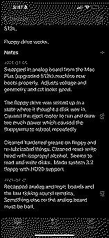 That is a good idea for flexibility. I have a field for "floppy reconditioned date", as well as dates for recaps of the logic, analog boards, and PSU. I could add the ability to add your own description for a maintenance activity with a date. As for the clickable list, what would the list item do when you click on it. I would think you'd just be able to edit or remove the maintenance item and date. |