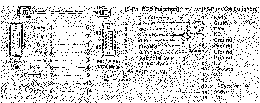 As a first crack at decoding the video I checked the voltages with a Multi-Meter on the DB9: 1. Ground 2. Ground 3. 1.2K Ohm Resistance 4. 1.5K Ohm Resistance 5. 1.5K Ohm Resistance 6. 6.2V DC 7. 3.5V DC 8. 2.3V DC 9. 2.23V DC The pin out kinda looked like CGA so I built a CGA to VGA cable from this guide: I was able to get this image on my monitor over VGA: Connection to Mac: