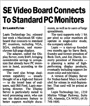 So those connectors may not be what you had though? Treat the center section of that 2x8 header as a VGA HD15 breakout to see if the stars align? Don't recall the issue date of that article, but the year of Lapis incorporation will nail it. Hard to imagine anything else used under license on those two MicroMac ZeroSlot VidCards, no? *****PHEW!!!!! Kept most of 'em alive this crash. Burn my pics/links once . . .
