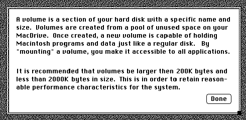 Out of curiosity, I opened up the Tecmar "Volume Manager" software (v6.0.3) in ResEdit and looked through the alert messages.